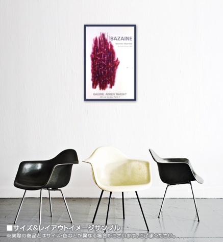 こちらのポスターはリトグラフになります。リトグラフ(lithograph):平板印刷の一種で油(インク)の撥水性を利用した印刷方法です。オフセット印刷の原型となる印刷方法で、元々は石(=リト)を原版に使用した為リトグラフと呼ばれますが、現在はより扱いに適したアルミ版が多く使われています。細かい筆致やインクの飛沫など原版の表現を損なう事無く印刷できるのが特徴です。