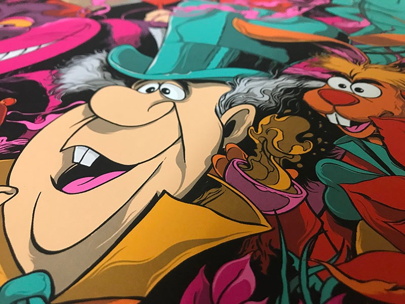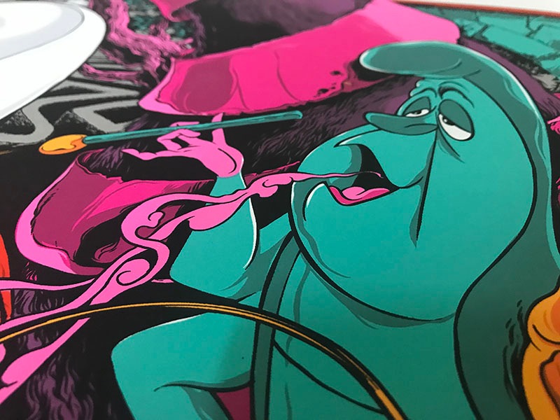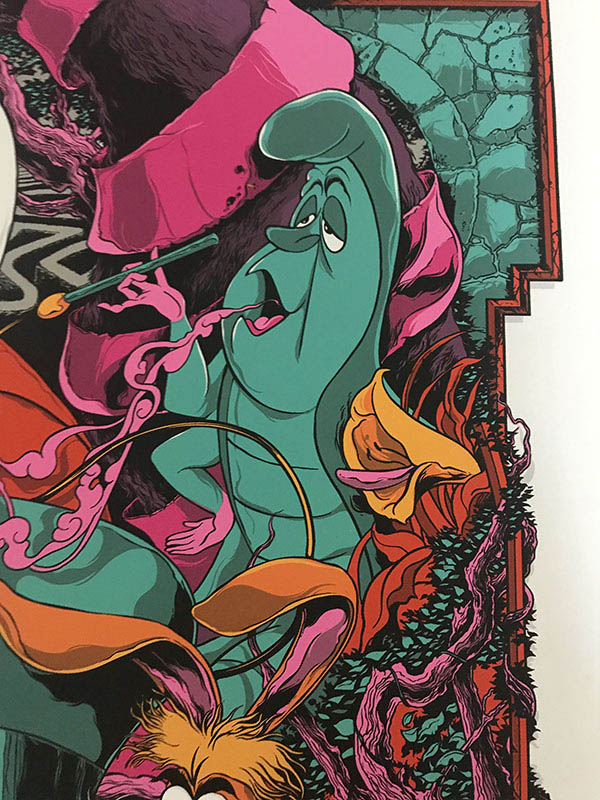 こちらのポスターはシルクスクリーンになります。シルクスクリーン(silkscreen):孔版印刷の一種で版面をインクが通る部分と通らない部分にわけて、インクを紙に押し出す方法です。印刷圧が少ないため様々な素材への印刷が可能で現在は版面にシルクの代わりにより目が細かく丈夫な化学繊維が使われることが多くなっています。印刷された時のインクの層が非常に厚く、繊細で柔らかな仕上がりが特徴です。