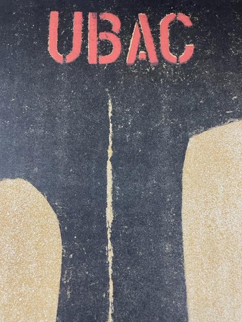 こちらのポスターはリトグラフになります。リトグラフ(lithograph):平板印刷の一種で油(インク)の撥水性を利用した印刷方法です。オフセット印刷の原型となる印刷方法で、元々は石(=リト)を原版に使用した為リトグラフと呼ばれますが、現在はより扱いに適したアルミ版が多く使われています。細かい筆致やインクの飛沫など原版の表現を損なう事無く印刷できるのが特徴です。