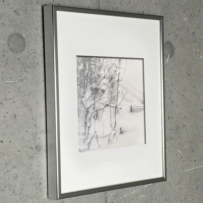 高級アルミ製フレーム、ホワイトマット加工にて額装しました。(※フレームの種類は変更できません。また、マットの種類や色も変更できません。何卒ご了承ください)