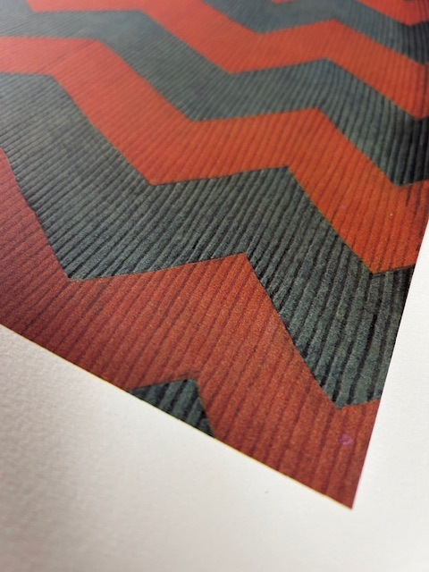 こちらのポスターはリトグラフになります。リトグラフ(lithograph):平板印刷の一種で油(インク)の撥水性を利用した印刷方法です。オフセット印刷の原型となる印刷方法で、元々は石(=リト)を原版に使用した為リトグラフと呼ばれますが、現在はより扱いに適したアルミ版が多く使われています。細かい筆致やインクの飛沫など原版の表現を損なう事無く印刷できるのが特徴です。