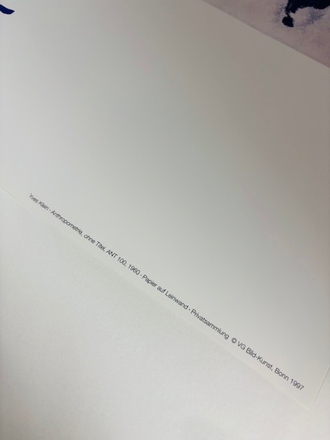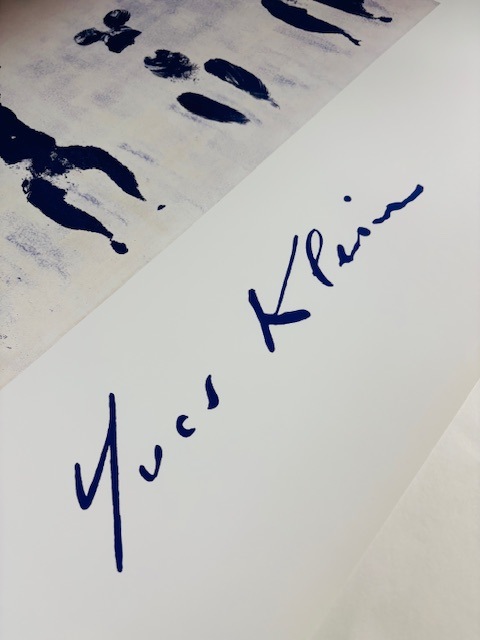 単色の作品を制作するモノクロニズムを代表するフランスの東欧系ユダヤ人の画家。アーティストとしての活動は晩年のごく数年である。特に「青」を宇宙の神秘的なエネルギーに通じる最も非物質的で抽象的な色だとして重用し、自ら理想的な染料を開発した。1957年に、黄金よりも高貴な青「インターナショナル・クライン・ブルー」と呼ばれる深い青色の特許を取得し、ミラノで『イヴ・クライン-モノクロームの提案、ブルーの時代』のタイトルで行われた個展で、この染料をキャンバス一面に塗布した青色の絵画の作品群を発表した。こちらのポスターはオフセットプリントになります。オフセットプリント(offset):平板印刷の一種で油(インク)の撥水性を利用した科学的な印刷方法です。版から紙へ直接印刷するのではなく中間転写体を介す為、版や紙への摩擦が少なく印刷できるのが大きな特徴です。正確で鮮明な多色刷りの印刷が可能で、原版からの再現性が高い事から現代のカラー印刷では最も広く使われています。