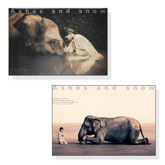 Ashes and Snow 2002年イタリアのヴェネツィアで初めて開催される。2005年ノマディック美術館の移動式常設展示施設の完成を機に全世界に向けた旅を開始しました。ニューヨーク(2005年1-5月)を皮切りにサンタモニカ(2006年1-5月)と移動。アーティスト、グレゴリー・コルベールによる100点の大型写真と35mm映画フィルム映像からなるエキシビジョンは、世界の都市をめぐり続けます。東京(2007年3-6月) こちらの作品はNYでの開催の際のポスターとなります。イタリアにてプリントされた、2000枚限定作品となります。