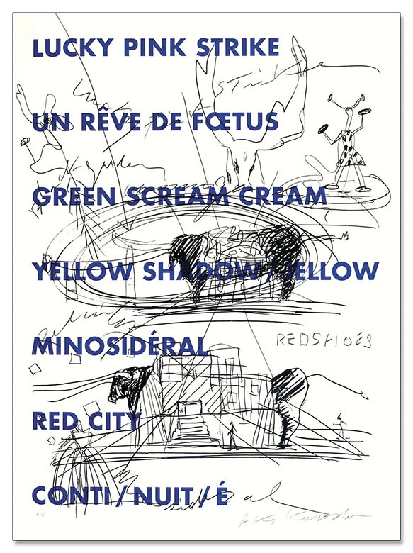 こちらのポスターはリトグラフになります。リトグラフ(lithograph):平板印刷の一種で油(インク)の撥水性を利用した印刷方法です。オフセット印刷の原型となる印刷方法で、元々は石(=リト)を原版に使用した為リトグラフと呼ばれますが、現在はより扱いに適したアルミ版が多く使われています。細かい筆致やインクの飛沫など原版の表現を損なう事無く印刷できるのが特徴です。