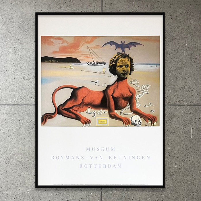 サルバドール ダリ スペイン 【1904-1989】今やシュルレアリスムの画家の代名詞とも言われるサルバドール ダリ。生涯すら一つの作品と捉えた彼は、緻密に計算された風貌や言動で自らのイメージをも演出しました。「柔」と「硬」といった相反する要素を一つの作品内で表現する「ダブルイメージ」など『偏執狂的批判的方法』と称する手法を駆使し、形而上の世界を形而下のキャンバスに卓越した技術で見事に描ききっています。後年の作品は宗教的な色彩を帯びたものに傾倒していきますが、最後までその芸術に対する姿勢は真摯であり純粋であり続けました。※こちらは貴重なヴィンテージ作品となります。こちらのポスターはオフセットプリントになります。オフセットプリント(offset):平板印刷の一種で油(インク)の撥水性を利用した科学的な印刷方法です。版から紙へ直接印刷するのではなく中間転写体を介す為、版や紙への摩擦が少なく印刷できるのが大きな特徴です。正確で鮮明な多色刷りの印刷が可能で、原版からの再現性が高い事から現代のカラー印刷では最も広く使われています。