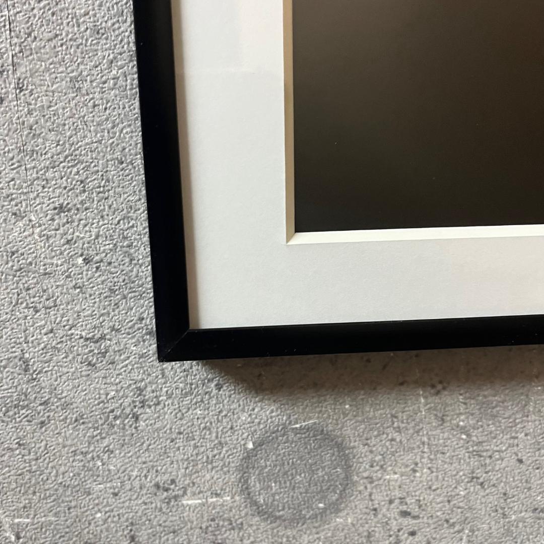 アルミのフレーム、フレームカラーはブラックにて額装しました。(※フレームの種類とフレームの色は固定のため、変更不可となります。何卒ご了承ください)正面から見た際のフレームは景観を壊さないシンプルな印象となりますため、作品がより印象深く、際立だせることができます。