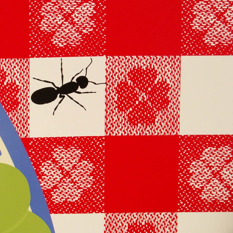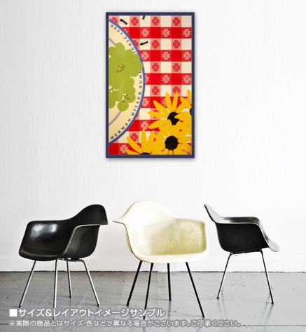 こちらのポスターはシルクスクリーンになります。シルクスクリーン(silkscreen):孔版印刷の一種で版面をインクが通る部分と通らない部分にわけて、インクを紙に押し出す方法です。印刷圧が少ないため様々な素材への印刷が可能で現在は版面にシルクの代わりにより目が細かく丈夫な化学繊維が使われることが多くなっています。印刷された時のインクの層が非常に厚く、繊細で柔らかな仕上がりが特徴です。
