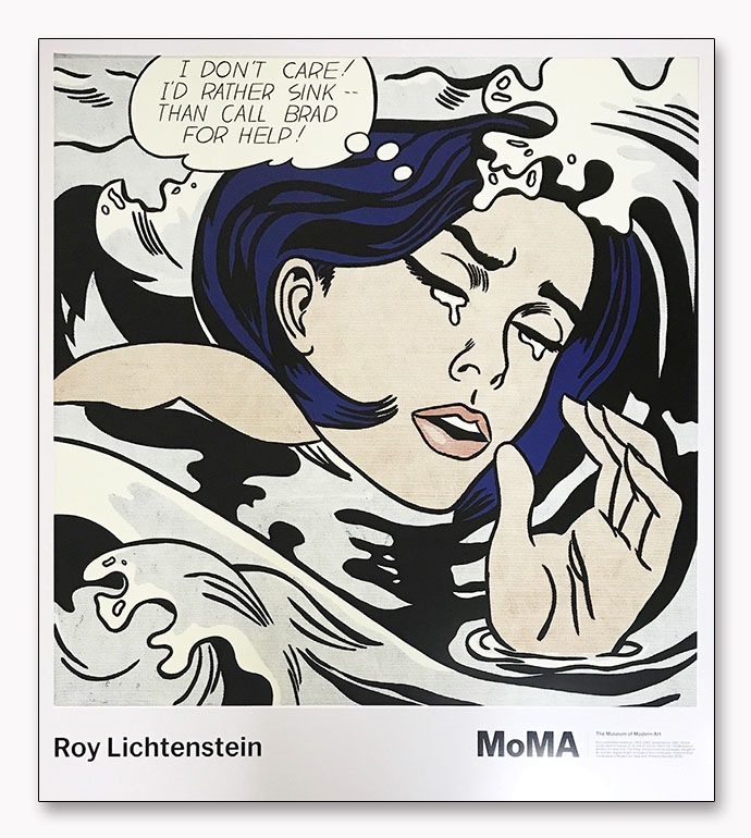 ロイ リキテンスタイン アメリカ【1923-1997】ウォーホルと共にポップアートを代表する画家リキテンスタイン。大学の講師や製図工で生計を立てながら抽象表現主義の流れを汲んだ作品を制作していた彼は、ある時自分の子供にミッキーマウスの絵をかいてやったのがきっかけで、漫画の持ちうるインパクトと表現力に気付きます。そして生まれたのが漫画の単純な一コマをドットまで含めて拡大した、単純であるからこそ強烈な表現力を持った作品の数々です。それは当時の美術界の主流で、彼自身も属していた抽象表現主義への決別であり、本来はストレートに心に響き身近なものであった芸術を我々大衆の手に取り戻すものでした。