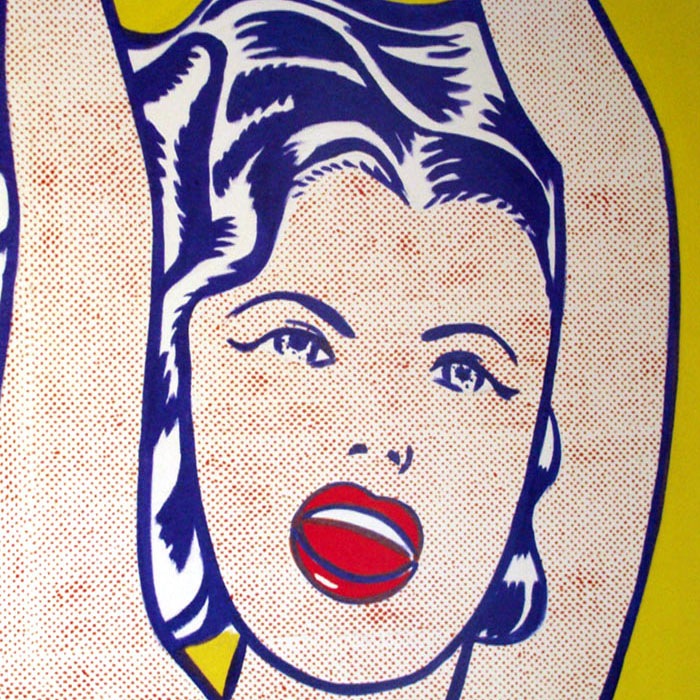 ロイ リキテンスタイン アメリカ【1923-1997】ウォーホルと共にポップアートを代表する画家リキテンスタイン。大学の講師や製図工で生計を立てながら抽象表現主義の流れを汲んだ作品を制作していた彼は、ある時自分の子供にミッキーマウスの絵をかいてやったのがきっかけで、漫画の持ちうるインパクトと表現力に気付きます。そして生まれたのが漫画の単純な一コマをドットまで含めて拡大した、単純であるからこそ強烈な表現力を持った作品の数々です。それは当時の美術界の主流で、彼自身も属していた抽象表現主義への決別であり、本来はストレートに心に響き身近なものであった芸術を我々大衆の手に取り戻すものでした。