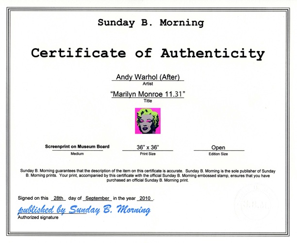 Sunday B Morning マリリンモンロー クラッシックマリリン オープン・エディション 10枚セット(各証明書付)