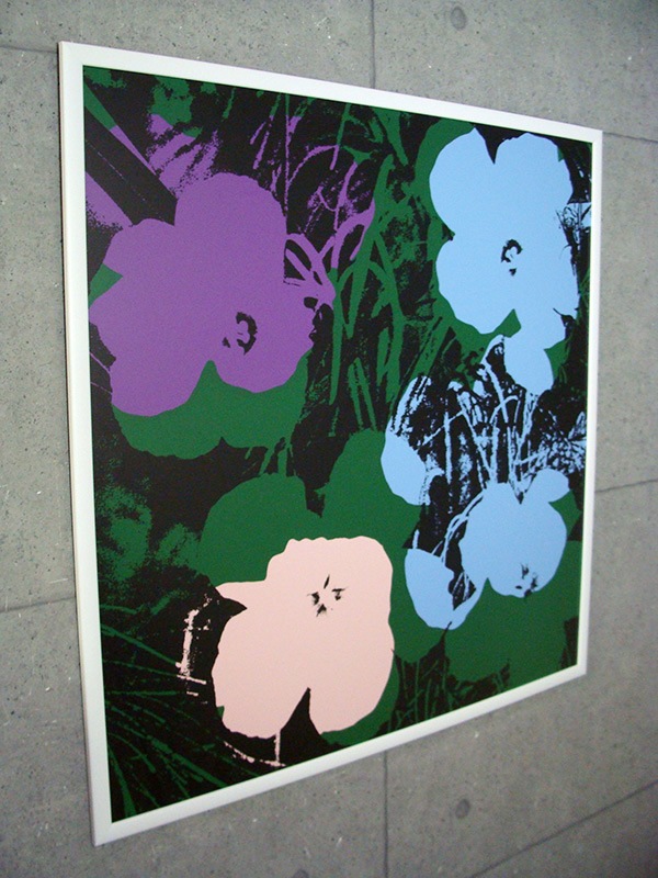 このポスターはシルクスクリーンになります。シルクスクリーン(silkscreen)とは孔版印刷の一種で版面をインクが通る部分と通らない部分にわけて、インクを紙に押し出す方法です。印刷圧が少ないため様々な素材への印刷が可能で現在は版面にシルクの代わりにより目が細かく丈夫な化学繊維が使われることが多くなっています。印刷された時のインクの層が非常に厚く、繊細で柔らかな仕上がりが特徴です。