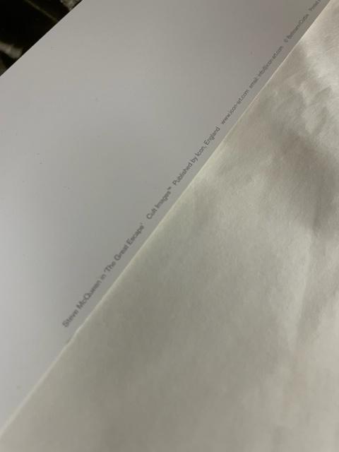 こちらのポスターはオフセットプリントになります。オフセットプリント(offset):平板印刷の一種で油(インク)の撥水性を利用した科学的な印刷方法です。版から紙へ直接印刷するのではなく中間転写体を介す為、版や紙への摩擦が少なく印刷できるのが大きな特徴です。正確で鮮明な多色刷りの印刷が可能で、原版からの再現性が高い事から現代のカラー印刷では最も広く使われています。