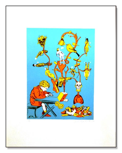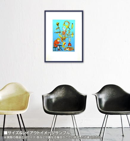 こちらのポスターはリトグラフになります。リトグラフ(lithograph):平板印刷の一種で油(インク)の撥水性を利用した印刷方法です。オフセット印刷の原型となる印刷方法で、元々は石(=リト)を原版に使用した為リトグラフと呼ばれますが、現在はより扱いに適したアルミ版が多く使われています。細かい筆致やインクの飛沫など原版の表現を損なう事無く印刷できるのが特徴です。