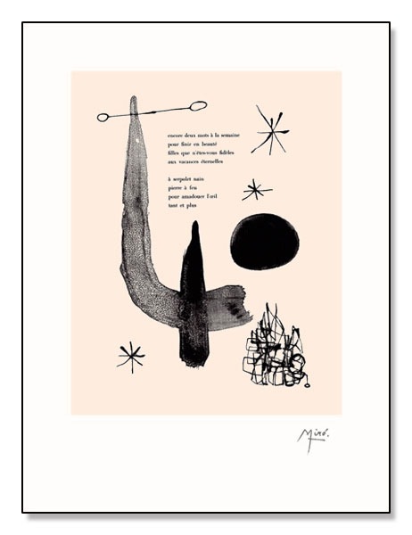 ジョアン ミロ スペイン【1893-1983】スペイン・カタルーニャ地方出身の芸術家と言えばピカソやダリ、ガウディなど錚々たる名前が挙がりますが、その中でも一際独自の光を放つミロ。それはシュルレアリスムの芸術家として知られながらも、他のシュルレアリストの作風とは全く異なる点においても認められます。シュルレアリスムでは古典的・写実的描写が多く用いられましたがミロの描く絵は、対象は見事に変形させられ、色調は激しく彩られ、独創性に満ちたものになっています。しかしそれこそが根元から自然と湧き上がってきたものであり、シュルレアリスムの主唱者アンドレ・ブルトンはその純粋で自由なオートマティスムを持ちうるミロこそが真のシュルレアリストであると述べています。