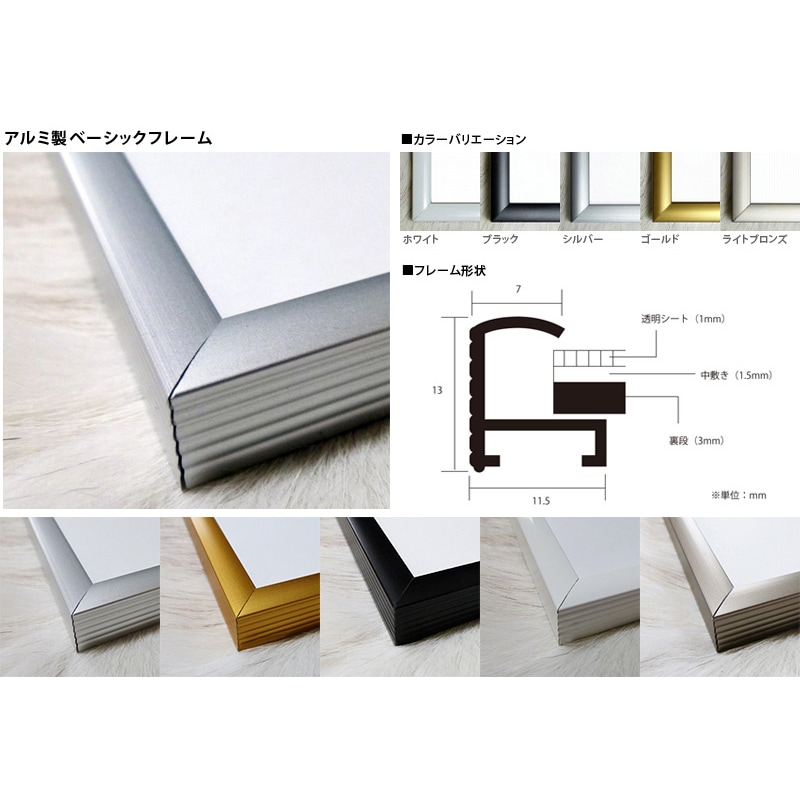 人気のアルミ製ベーシックフレーム、ホワイトマット加工にて額装しました(※フレームの種類は変更できません。※フレームカラーはお選びいただけます。※マットの種類、色は固定となり、変更は出来ません。何卒ご了承ください。)(※掲載画像はイメージとなります。マット幅に関しましては多少の誤差がございますのでご了承ください。)