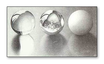 MC エッシャー オランダ 【1898-1972】 エッシャーの作品の最大の特徴は、だまし絵としての空間と非常に数学的・結晶学的なアプローチで描かれた構図にあります。そのタッチから寓話的なイメージも受けますが、そのようなイメージをエッシャー自身はひどく嫌っており、生涯を賭して彼は職人的に「平面の正則分割」「鏡面」「遠近法」など理工的な世界の構築を探究しつづけました。それでも彼の人間性までもが数学的・理工的であった訳ではなく、自然社会に存在する動植物などが作品の多くのモチーフになっており、エッシャーの豊かな人間性が汲み取れます。