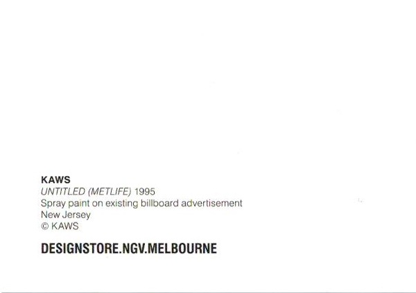 Kaws (ブライアン・ドネリー)1974年ニュージャージー州ジャージーシティー生まれのアーティスト ニューヨークのビジュアルアーツでファインアートを学んだ彼は、1996年に卒業し、フリーランスのアニメーターとしてディズニーアニメーションの背景などを手掛けていました。グラフィティアーティストとしては1990年代初めから活動をはじめ、ニューヨークの街中でビルボードやバス待合所、電話ボックス広告などに落書きするようになりました。