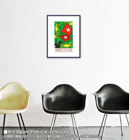 こちらのポスターはシルクスクリーンになります。シルクスクリーン(silkscreen):孔版印刷の一種で版面をインクが通る部分と通らない部分にわけて、インクを紙に押し出す方法です。印刷圧が少ないため様々な素材への印刷が可能で現在は版面にシルクの代わりにより目が細かく丈夫な化学繊維が使われることが多くなっています。印刷された時のインクの層が非常に厚く、繊細で柔らかな仕上がりが特徴です。