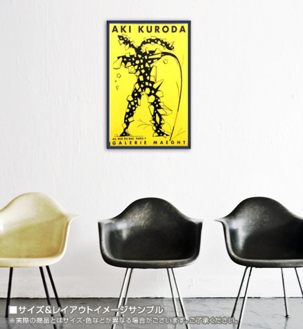 こちらのポスターはリトグラフになります。リトグラフ(lithograph):平板印刷の一種で油(インク)の撥水性を利用した印刷方法です。オフセット印刷の原型となる印刷方法で、元々は石(=リト)を原版に使用した為リトグラフと呼ばれますが、現在はより扱いに適したアルミ版が多く使われています。細かい筆致やインクの飛沫など原版の表現を損なう事無く印刷できるのが特徴です。