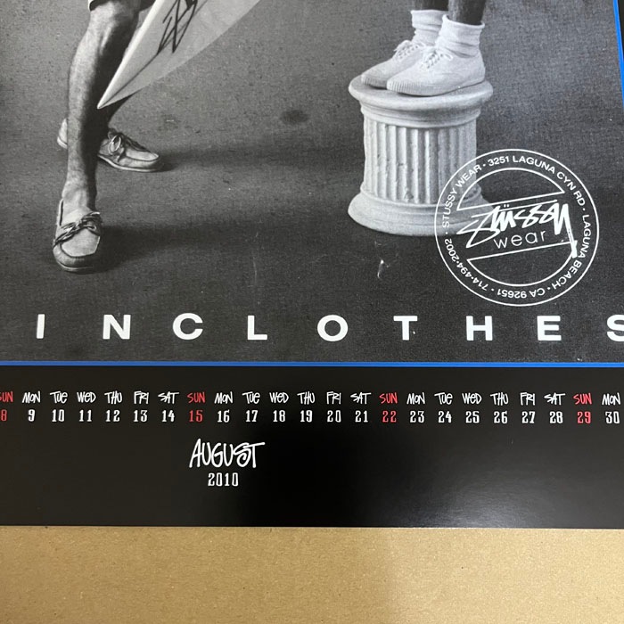 Stussyサーフボードのボードシェイパーをしていた、「ショーン・ステューシー」氏が、アメリカの南カリフォルニア州にて、仲間のためにデザインした数枚のTシャツから、産声を上げた、ストリートブランド!こちらは30周年の貴重な限定カレンダープリントとなります。