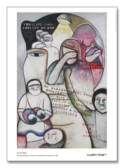モニカ・シュー(Monica Sjoo 1938?2005)は、スウェーデン出身でイギリスを拠点に活動した画家・作家・活動家です。彼女は フェミニズム芸術運動 や エコフェミニズム の先駆者として知られ、神話や大地母神(グレート・マザー)のイメージを強く打ち出した作品を数多く残しました。代表作には「God Giving Birth(神が出産する)」があり、女性の身体性とスピリチュアルな力をテーマにしています。また、芸術活動と並行して執筆や講演も行い、女性解放運動、反核運動、環境保護運動など社会的な活動にも積極的に関わりました。