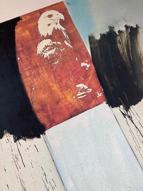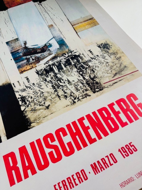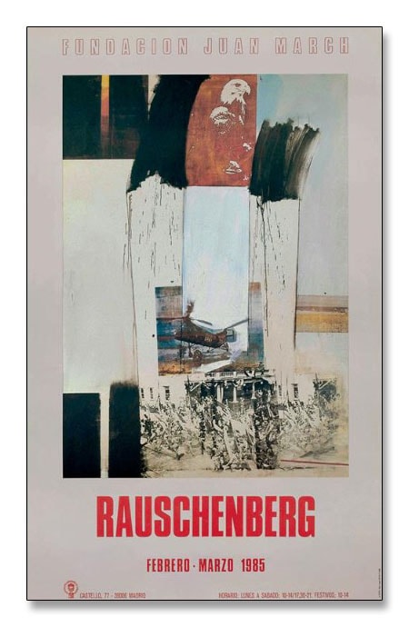 ロバート・ラウシェンバーグ【1925-】は、20世紀のアメリカの美術家。1925年、テキサス州ポート・アーサーに生まれました。第二次大戦中の1942年から1945年までは海軍に所属していた経歴があり、終戦後、1947年から翌年初めにかけてカンザスシティ・アート・インスティテュートにて絵画を学びます。1955年頃から「コンバイン(結合)・ペインティング」と呼ばれる一連の作品を発表し始めます。ラウシェンバーグは、自分の目的は「芸術作品をつくることではなく、芸術と生活の橋渡しをすることだ」そうです。彼の「コンバイン・ペインティング」の典型的な作品は、抽象表現主義風の激しい筆致で塗られたキャンヴァスに、ケネディ大統領やアポロ宇宙船などのイメージを貼り付け、あるいは画面に交通標識、古タイヤなどの現実の物体を貼り付けたりしたもので、その作品はしばしば2次元の枠をはみ出している感覚があります。