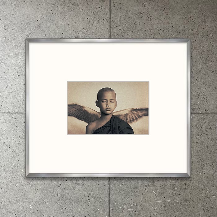グレゴリー コルベールミニプリントを高級アルミ製フレーム、ホワイトマット加工にて額装しました。(フレームの種類は固定となりますので、変更は出来ません。色はお選びいただけます。)