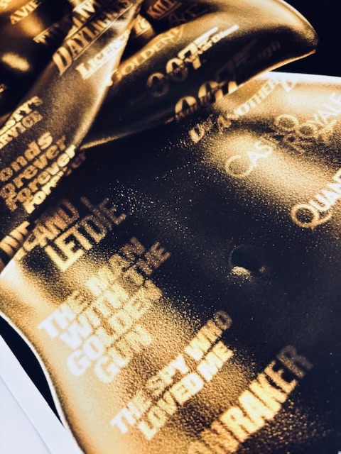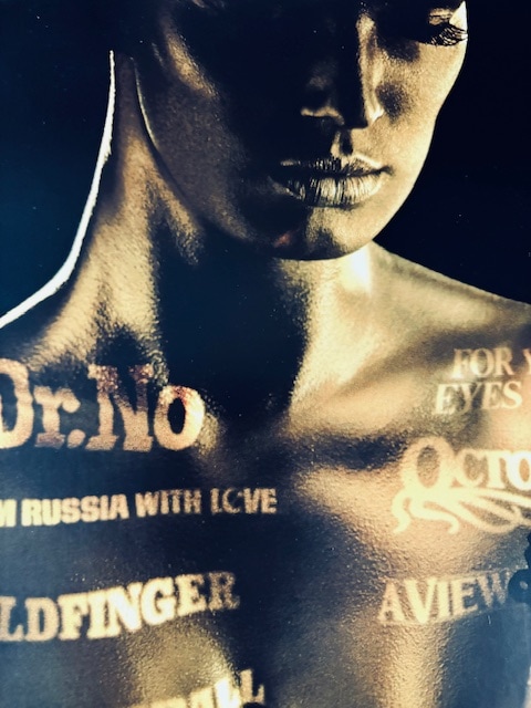 映画『007』シリーズ50周年を記念して制作されたアートポスター。黄金に輝く女性のボディに、歴代作品のタイトルがタイポグラフィとして重ねられ、シリーズの歴史と魅力を象徴的に表現している。拳銃を手にしたシルエットはボンドの世界観を強く想起させ、洗練されたラグジュアリーな雰囲気が特徴。『ドクター・ノオ』から『スカイフォール』までの軌跡を一枚に凝縮した、ファン必見のビジュアル作品。アメリカミュージアムにて購入の作品となります。