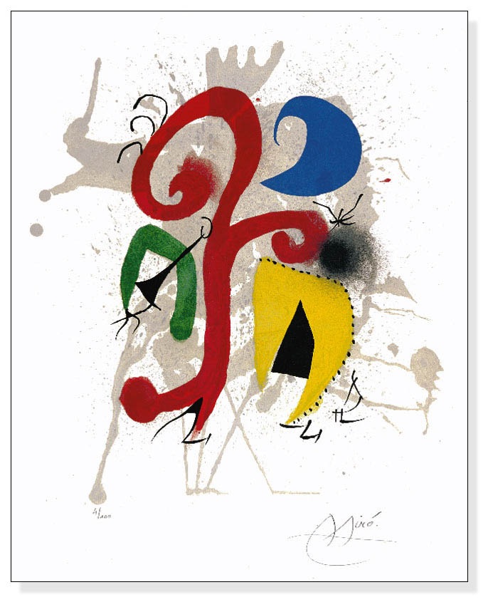 スペイン・カタルーニャ地方出身の芸術家と言えばピカソやダリ、ガウディなど錚々たる名前が挙がりますが、その中でも一際独自の光を放つミロ。それはシュルレアリスムの芸術家として知られながらも、他のシュルレアリストの作風とは全く異なる点においても認められます。シュルレアリスムでは古典的・写実的描写が多く用いられましたがミロの描く絵は、対象は見事に変形させられ、色調は激しく彩られ、独創性に満ちています。