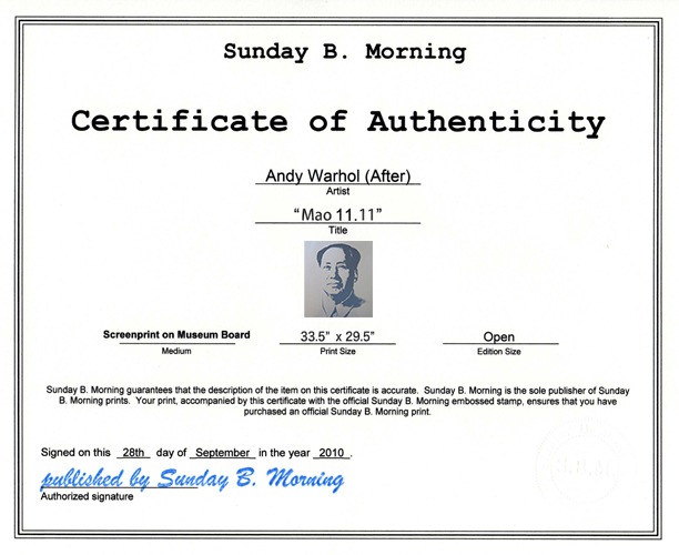 Sunday B Morning マオ(毛沢東) オープン・エディション 証明書付(アンディ ウォーホル)