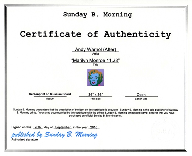 Sunday B Morning マリリンモンロー オープン・エディション 証明書付(アンディ ウォーホル)