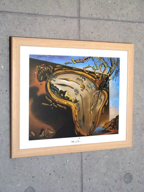 サルバドール ダリ スペイン 【1904-1989】今やシュルレアリスムの画家の代名詞とも言われるサルバドール ダリ。生涯すら一つの作品と捉えた彼は、緻密に計算された風貌や言動で自らのイメージをも演出しました。「柔」と「硬」といった相反する要素を一つの作品内で表現する「ダブルイメージ」など『偏執狂的批判的方法』と称する手法を駆使し、形而上の世界を形而下のキャンバスに卓越した技術で見事に描ききっています。後年の作品は宗教的な色彩を帯びたものに傾倒していきますが、最後までその芸術に対する姿勢は真摯であり純粋であり続けました。こちらのポスターはオフセットプリントになります。オフセットプリント(offset):平板印刷の一種で油(インク)の撥水性を利用した科学的な印刷方法です。版から紙へ直接印刷するのではなく中間転写体を介す為、版や紙への摩擦が少なく印刷できるのが大きな特徴です。正確で鮮明な多色刷りの印刷が可能で、原版からの再現性が高い事から現代のカラー印刷では最も広く使われています。
