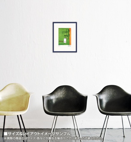 こちらのポスターはリトグラフになります。リトグラフ(lithograph):平板印刷の一種で油(インク)の撥水性を利用した印刷方法です。オフセット印刷の原型となる印刷方法で、元々は石(=リト)を原版に使用した為リトグラフと呼ばれますが、現在はより扱いに適したアルミ版が多く使われています。細かい筆致やインクの飛沫など原版の表現を損なう事無く印刷できるのが特徴です。
